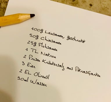 Die geschroteten Leinsamen mit den Chiasamen und den Flohsamen vermischen. Die restlichen Zutaten dazu geben und alles mit dem Mixer gut durchmixen. Die Masse wird relativ dünn. Nach einer halben Stunde quellen die Samen jedoch gut auf und die Konsistenz wird fest. Nun mit angefeuchteten Händen 4-5 Brötchen formen, auf ein mit Backpapier ausgelegtes Backblech legen und oben längs und quer leicht einschneiden. Bei 150 Grad etwa eine Stunde im vorgeheizten Backrohr backen.